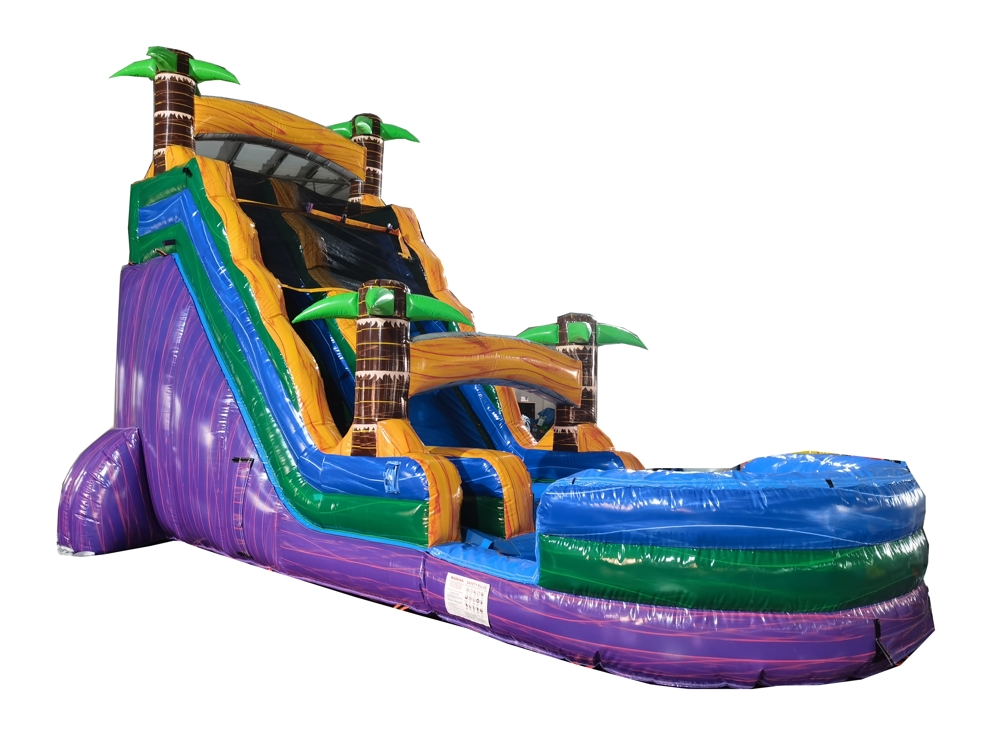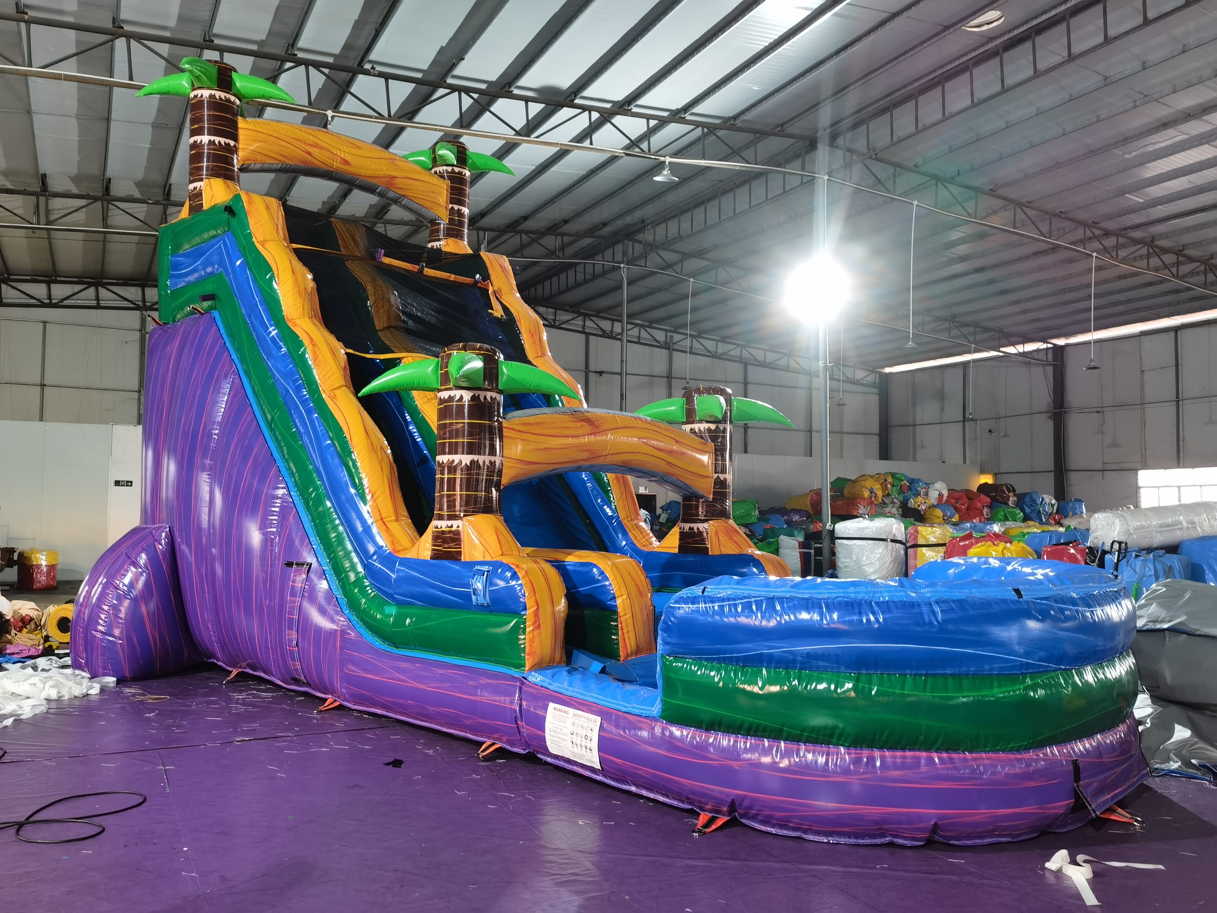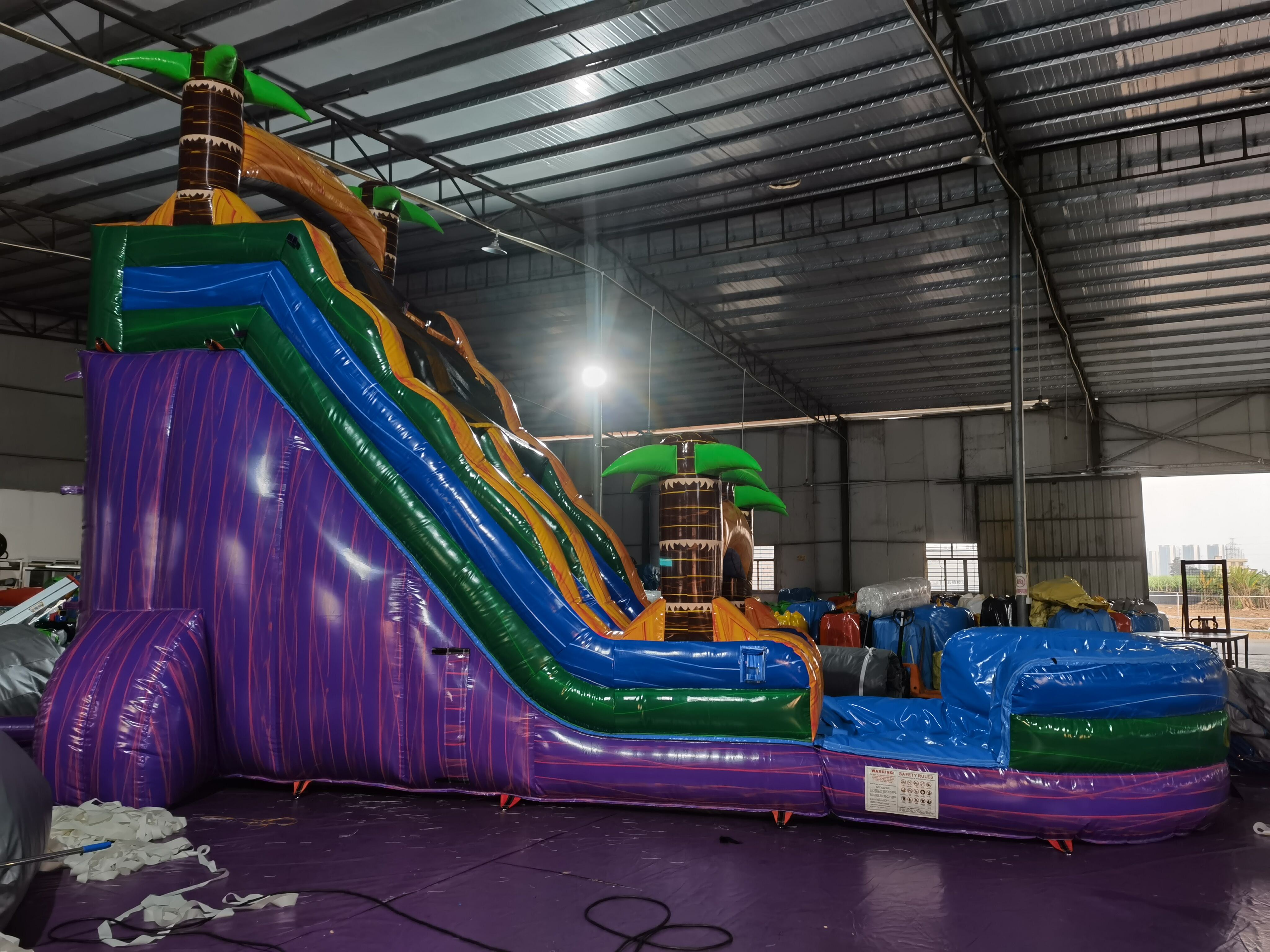 Stock availability: 35+ units in stock, supports bulk replenishment for event renters & distributors Clearance discount: 9% off for 2+ units, more competitive than regular wholesale pricing Commercial configuration: 0.55mm thick PVC, tropical palm decor, single slide + splash pool (suitable for parties/parks) MOQ flexibility: 1 unit minimum order, ideal for small-scale rental businesses |