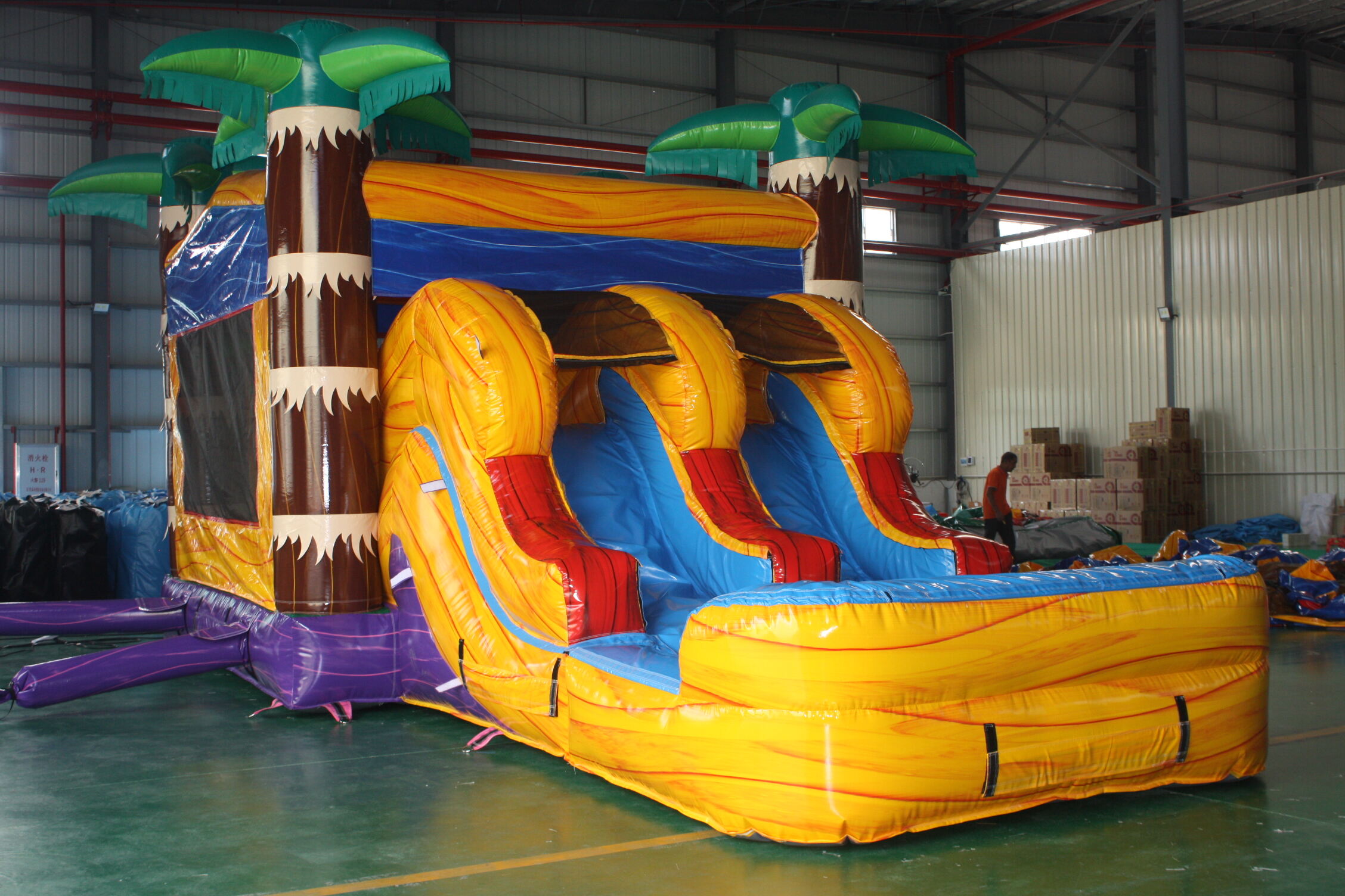 In terms of transportation and packaging, each inflatable product is carefully wrapped with high-quality PVC film to prevent collisions and scratches during transportation; The matching dedicated blower is separately packed in a thick and reinforced cardboard box, which is convenient for handling and subsequent storage management. In addition, all inflatable products support rapid inflation and deflation, with installation and construction taking only a few minutes. After storage, the compact size greatly saves storage and transportation space.