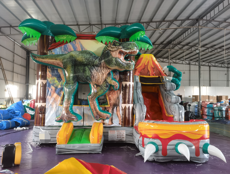 Przyjazny dzieciom tematyczny zestaw napowietrzany z T-Rexem i wulkanem dla spotkań przygodowych z dinozaurami Jurassic Volcano Dino Inflatable (skaczący + zjeżdżalnia) dla dziecięcych urodzin z motywem dinozaurów Zabawny zestaw napowietrzany z wulkanem dinozaura dla dziecięcych obchodów eksploracji jurajskich