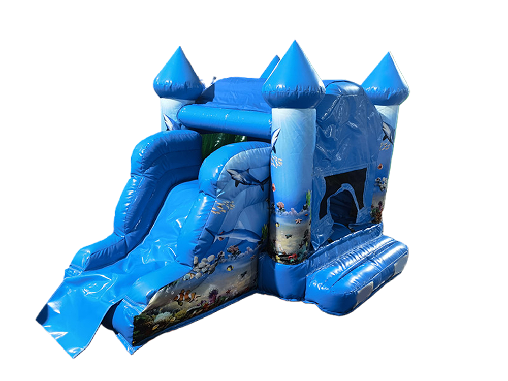 Malý nafukovací domček s tématikou podvodného života pre narodeninové oslavy detí |